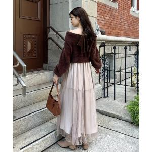 ワンピース リボンファーフレアニットミニワンピース ワンピース リボンファーフレアニットミニワンピース13,200円