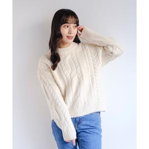 ニット セーター ボーイフレンド ケーブルクルーネック プルオーバー レディース