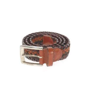 エトロ ETRO 編み込み レザー バックルベルト 小物 38/95 ブラウン 茶 メンズ