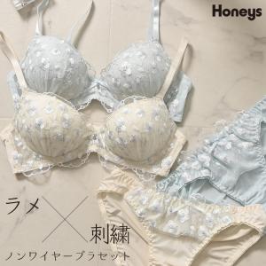 下着 アンダーウェア ブラセット 花柄ブラ 花柄 刺繍 レース チュール ノン Honeys ハニーズ ノンワイヤーブラセット