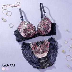 プチマリー Luxe Bloom ブラジャー ノーマルショーツ セット ブラセット ABCDEF 脇高 谷間 盛りブラ petit marie BLACK 大きいサイズ