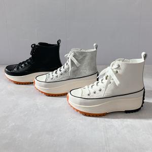 【26春夏新作】【人気商品】厚底 サイドファスナー ハイカット レースアップスニーカー