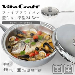 ビタクラフト ファイブフライパン 24.5cm ステンレス 蓋付き 無水調理 ステンレス VitaCraft メーカー10年保証