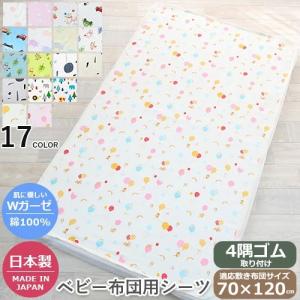 ガーゼシーツ Wガーゼシーツ 柄入り プリント 70×120cm用 4隅ゴム取り付け ガーゼシーツ 綿100% 敏感肌 汗取り効果 ベビー用 レギュラーサイズ フジキ