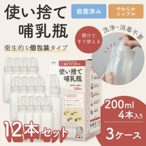4本入り×3箱 使い捨て哺乳瓶 レディボトル 200ml 12本セット 個包装 殺菌済 衛生的 使いきり 旅行 レジャー 防災 災害 おでかけ用 新生児 出産祝い 出産準備