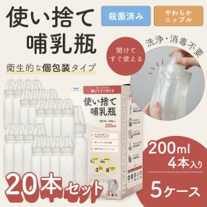 4本入り×5箱 使い捨て哺乳瓶 レディボトル 200ml 20本セット 個包装 殺菌済 衛生的 使いきり 旅行 レジャー 防災 災害 おでかけ用 新生児 出産祝い 出産準備