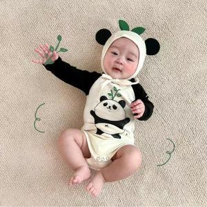 ロンパース 新生児 コンビドレス 66〜90cm パイル地ピークル パンダ柄ホワイト かわいい年中素材 出産準備品に 男の子女の子OK 出産祝いにも喜ばれるベビー服