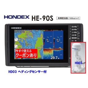 おさかな 新機能 魚群探知機 ホンデックス HE-90S 600W HD03 ヘディング付 振動子 TD28 GPS魚探 デプスマッピング搭載 クーポン あり