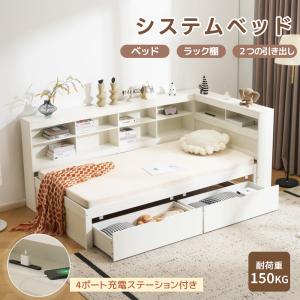 システムベッド シングル 北欧風 おしゃれ 4ポート充電ステーション付き ベッド 頑丈 ラック 引き出し付き 子供ベッド 大人 子供部屋 子ども用 一人暮らし