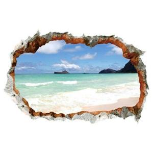 ウォールステッカー 窓 海 南国 ビーチ 風景 おしゃれ シール お風呂 壁紙 壁の穴 レンガ ヤシの木 ハワイ ハワイアン サーフ 西海岸 アメリカン 壁穴 vr01795