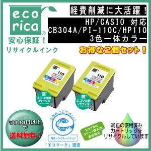★お得な2個SET★【プリン写ル 年賀状にも!】CB304A/PI-110C/HP110 3色一体カラー リサイクル品(エコリカ)ECI-HP110C-V 2個入