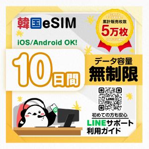 韓国eSIM:使用日数:10日間/データ容量:無制限/SKテレコム/簡単設定/有効期限90日/最短即日発行/パスポート番号不要/データ通信専用/韓国SIM