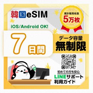 韓国eSIM:使用日数:7日間/データ容量:無制限/SKテレコム/簡単設定/有効期限90日/最短即日発行/パスポート番号不要/データ通信専用/韓国SIM
