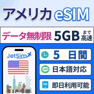 【アメリカ・ハワイ eSIM】5日間 5GB 高速データ 1日1GBまで高速 4G/5G対応 即日発行 テザリング可