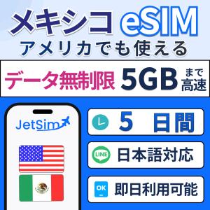【アメリカ/メキシコ eSIM】5日間 5GB 高速データ 1日1GB 5G/4G対応 プリペイドSIM 即日発行 テザリング可