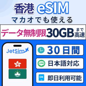 【香港・マカオeSIM】30日間 30GB 高速データ 1日1GBまで高速 4G/5G対応 即日発行 テザリングOK