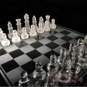 クリスタル チェスセット 35cm 全ガラス製 KNK(株) 国際チェス 盤 駒 インテリア 学生 大人 教育 脳トレ プレゼント 高級感