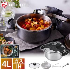 圧力鍋 ガス 4L IH ガス対応 両手圧力鍋 2段階 圧力鍋 鍋 RAN-4L アイリスオーヤマ ワンタッチ開閉 レシピ本 ガラスふた付き 節約 時短
