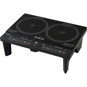 【新品(外箱キズのみ)】山善 2口IHクッキングヒーター (脚付き) KES-WL1456E-H