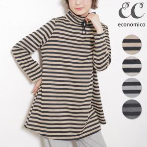 チュニック 長袖 大人可愛い カットソー プルオーバー ボーダー 裏起毛 トップス 婦人服 普段着 通勤 秋 冬 M L チュニック355 TRUBE Economico 97-197143