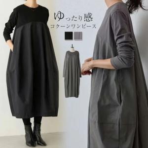 ワンピース 長袖 レディース 春 秋 ロング丈 コクーン ロング丈ワンピース コクーンワンピース 切り替え ワンピース 大きいサイズ ビッグシルエット ゆったり