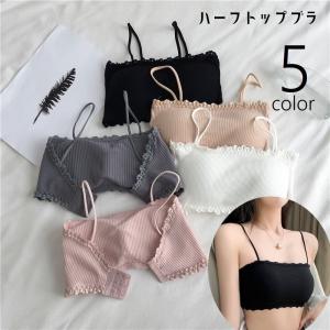 ハーフトップブラ ノンワイヤーブラ レディース 女性 婦人服 下着 インナー ブラジャー カップ付き パッド付 3段ホック リブ生地 フリル おしゃれ