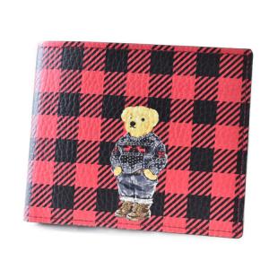財布 メンズ 二つ折り ポロ ラルフローレン ブランド チェック ポロベア フラップ 専用箱付 レッド ブラック 男性 紳士 本革 レザー おしゃれ P-211BCK 訳あり