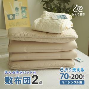 小さめ 敷布団 2点セット セミシングル 防水パッド付 抗菌防臭 防ダニ 6折り 軽量 コンパクト 洗濯機で丸洗いOK おねしょシーツ 2P (6M BPパイル) ちょこ寝S