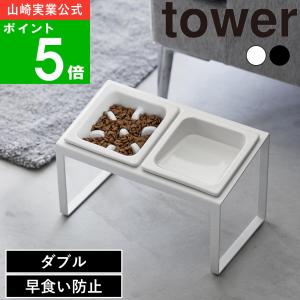 ( ペットフード ボウル スタンド 斜めハイタイプ 早食い防止 ダブル タワー) tower 山崎実業 公式 オンライン 通販 餌 エサ台 餌入れ 食器 ドッグ フード