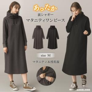 マタニティ ワンピース 授乳服 裏起毛 長袖 スタンドネック ハイネック あったか 裏シャギー らくちん fairy スタンドネック 授乳 ゆったり エンジェリーベ