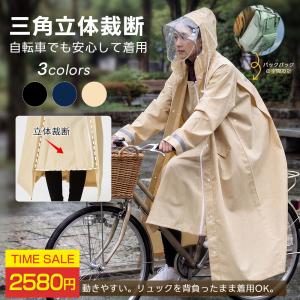 レインコート 自転車 リュック対応 レディース メンズ ロング 丈 二重袖口 反射帯付き レインポンチョ おしゃれ 軽量 カッパ 雨具 サイクル 通学 通勤 男女兼用