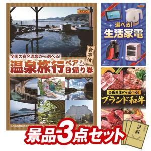 忘年会 景品セット 3点 結婚式二次会 ゴルフコンペ イベント パーティーにも最適!目玉は選べるペア日帰り入浴+食事付きプラン!