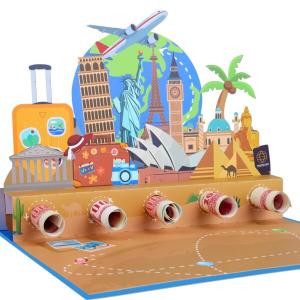 世界を旅する ご祝儀用の現金封筒 ポップアップ グリーティングカード、空白のノートカードと