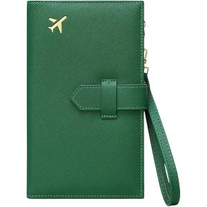 パスポートケース スキミング防止 薄型 二つ折り パスポートカバー 軽量 ストラップ付き (グリーン)
