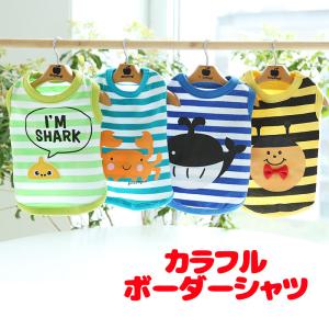 犬 服 犬の服 春服 春夏用 カラフルボーダーシャツ クジラ サメ カニ しましま