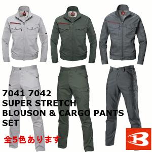 送料無料 上下セット バートル BURTLE 春夏用 制電ストレッチジャケット 7041 カーゴパンツ 7042 ユニセックス 作業服 作業着