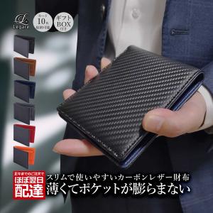Legare レガーレ 財布 二つ折り メンズ 薄い コンパクト カーボンレザー スリム 2つ折り 本革 6色 小銭入れ