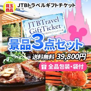 景品 JTB旅行券をメインに人気のステーキと海鮮を加えた景品3点セット 目録 二次会 ゴルフコンペ ビンゴ 社内表彰 新年会