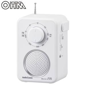 オーム電機 AudioComm 耳もとスピーカーラジオ 乾電池式 ホワイト RAD-T280N テレビ用 手元 スピーカー ラジオ 有線 FM AM