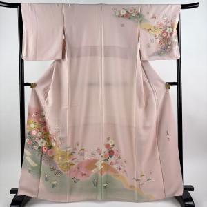 訪問着 身丈166cm 裄丈65cm M 袷 松井青々 落款あり 菊 有職文様 金彩 ぼかし ピンク 正絹 逸品 中古