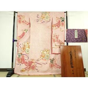 平和屋本店●最高級 本疋田絞り 振袖 仮絵羽 松坂屋調製 染織名作展 駒刺繍 絢爛絞繍御所車文様 金糸 上代200万 共箱付き 逸品DZAB4612kh6