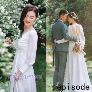 ウエディングドレス 新作挙式 二次会 袖あり 長袖 白 花嫁 エンパイア シンプル 格安 披露宴 前撮り aライン 旅行撮影 新婦 ビーチ ロングドレス