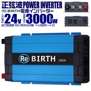 正弦波インバーター バッテリー ポータブル電源 防災 非常用電源 車中泊 アウトドア 24V 定格3000W DC24V / AC100V 50Hz/60Hz切替可能 USBポート付