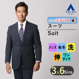 【洋服の青山】スーツ メンズ スタンダード 秋冬 ネイビー系 紺 セットアップ 上下セット 男性 織柄 ウォッシャブル ストレッチ 伸縮 洗える エコ素材 総裏