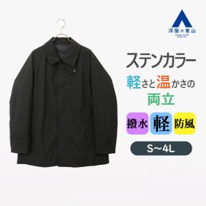 【洋服の青山】ステンカラーコート メンズ スリム 秋冬 ブラック 黒 無地 AIR FLAKE 大きいサイズ 暖かい 保温 軽い 撥水 軽量 防風 雨 雪 ビジネス カジュアル