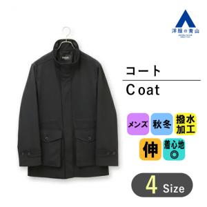 【洋服の青山】秋冬用 ブラック系 ステンカラースタンダードコート【合繊】 【WORLD TRAVEL】メンズ ビジネス カジュアル ストレッチ 撥水加工 防風 アウター