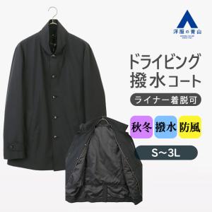 【洋服の青山】ドライビングコート メンズ 秋冬 ブラック 黒無地 撥水 汚れにくい 防風 暖かい 防寒 ライナー着脱可能 ゆったり 大きいサイズ スタンダード