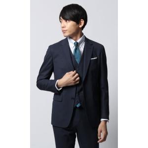 【洋服の青山】スーツ メンズ スリム 春夏秋冬 ネイビー系 紺 スリーピース 紳士服 織柄 ストレッチ 形状記憶 細身体 スリム スタイリッシュ ベスト ビジネス