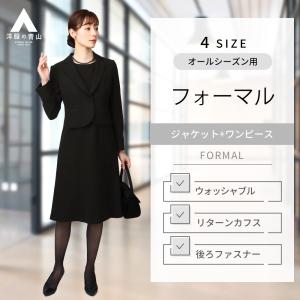【洋服の青山】テーラードカラー アンサンブル レディース オールシーズン ブラック ウォッシャブル 洗える 黒無地 ジャケット + ワンピース 後ろファスナー