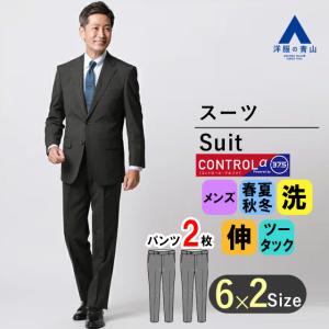【洋服の青山】CONTROLα ツーパンツ スーツ メンズ オールシーズン グレー 標準体 調温調湿 透湿速乾 ウォッシャブル 洗える 消臭 ストレッチ ビジネス REGAL